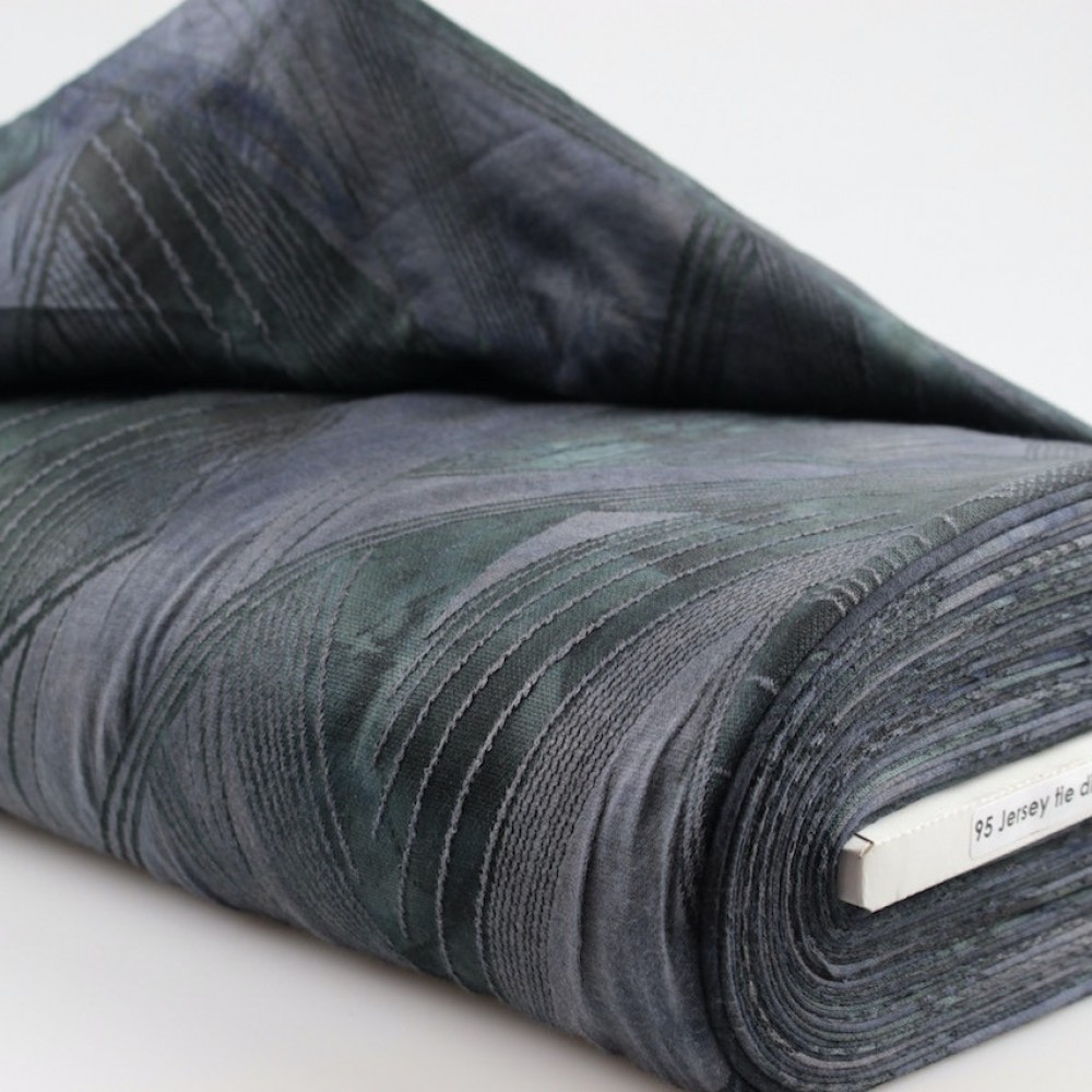 Tamsus džersis, dažytas batikos technika.